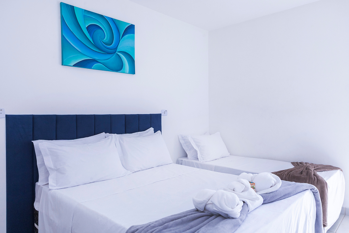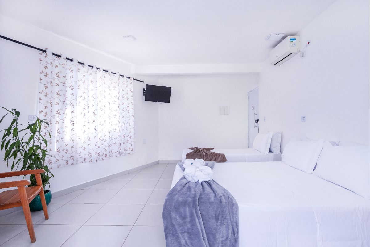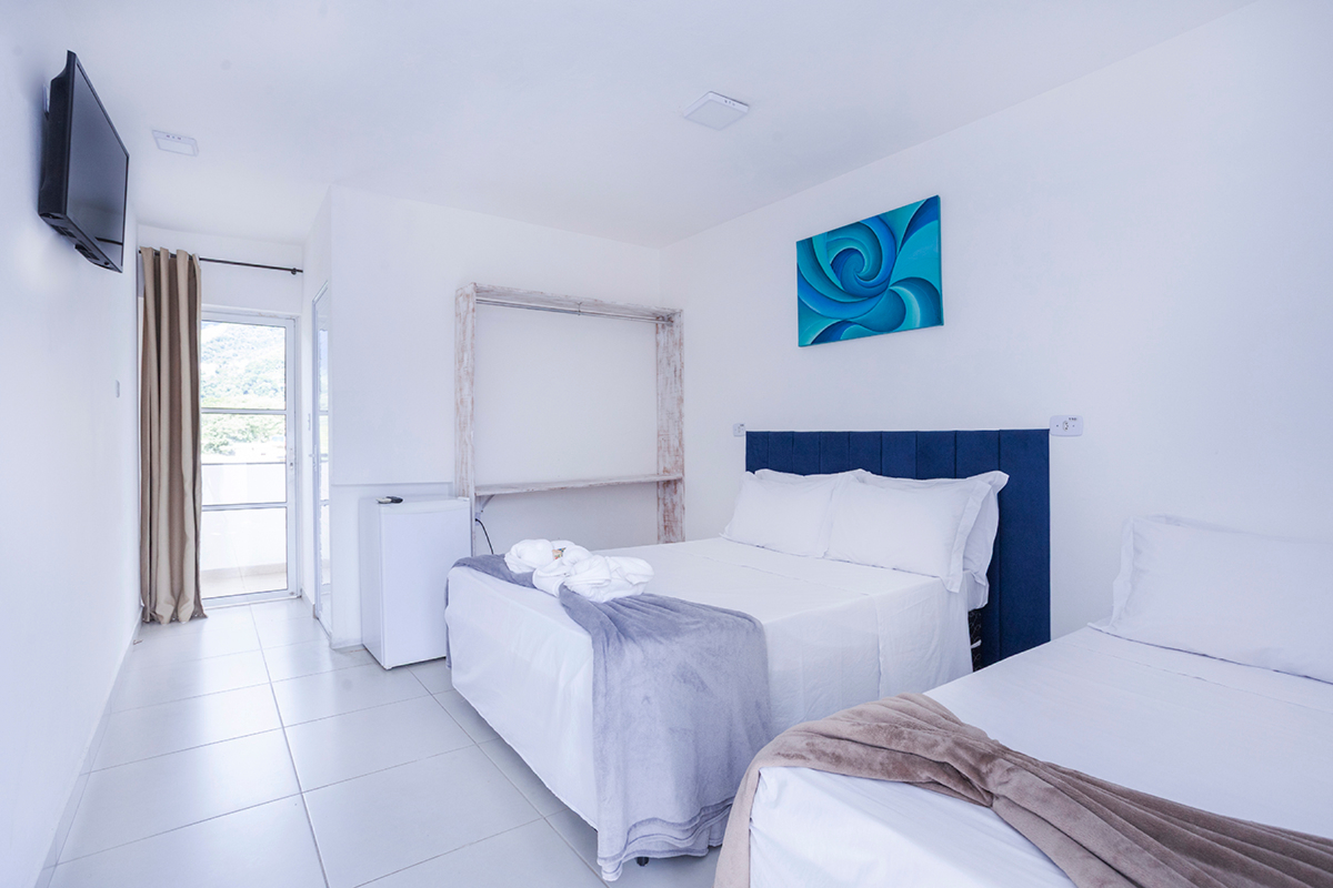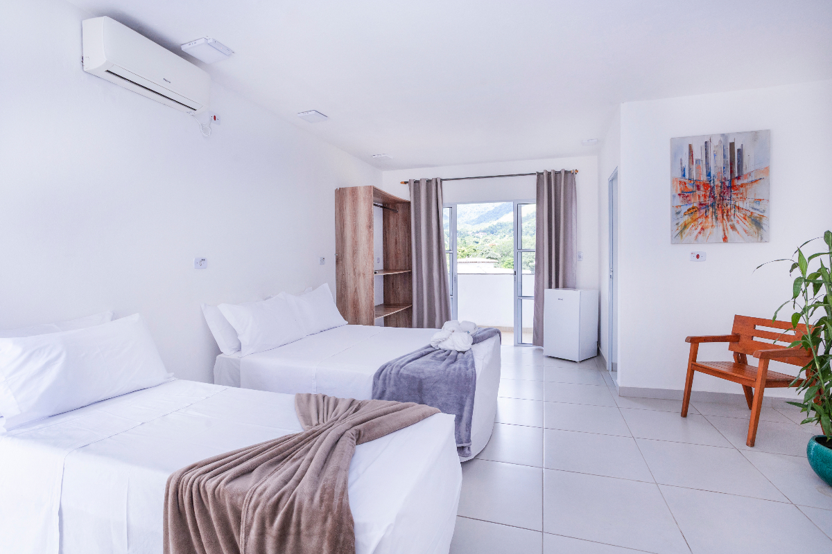 Suba de nível e escolha o conforto premium com um toque a mais! Além das camas Queen Solteiro, você terá o diferencial de uma Varanda privativa para relaxar, tudo isso com TV, frigobar e internet.